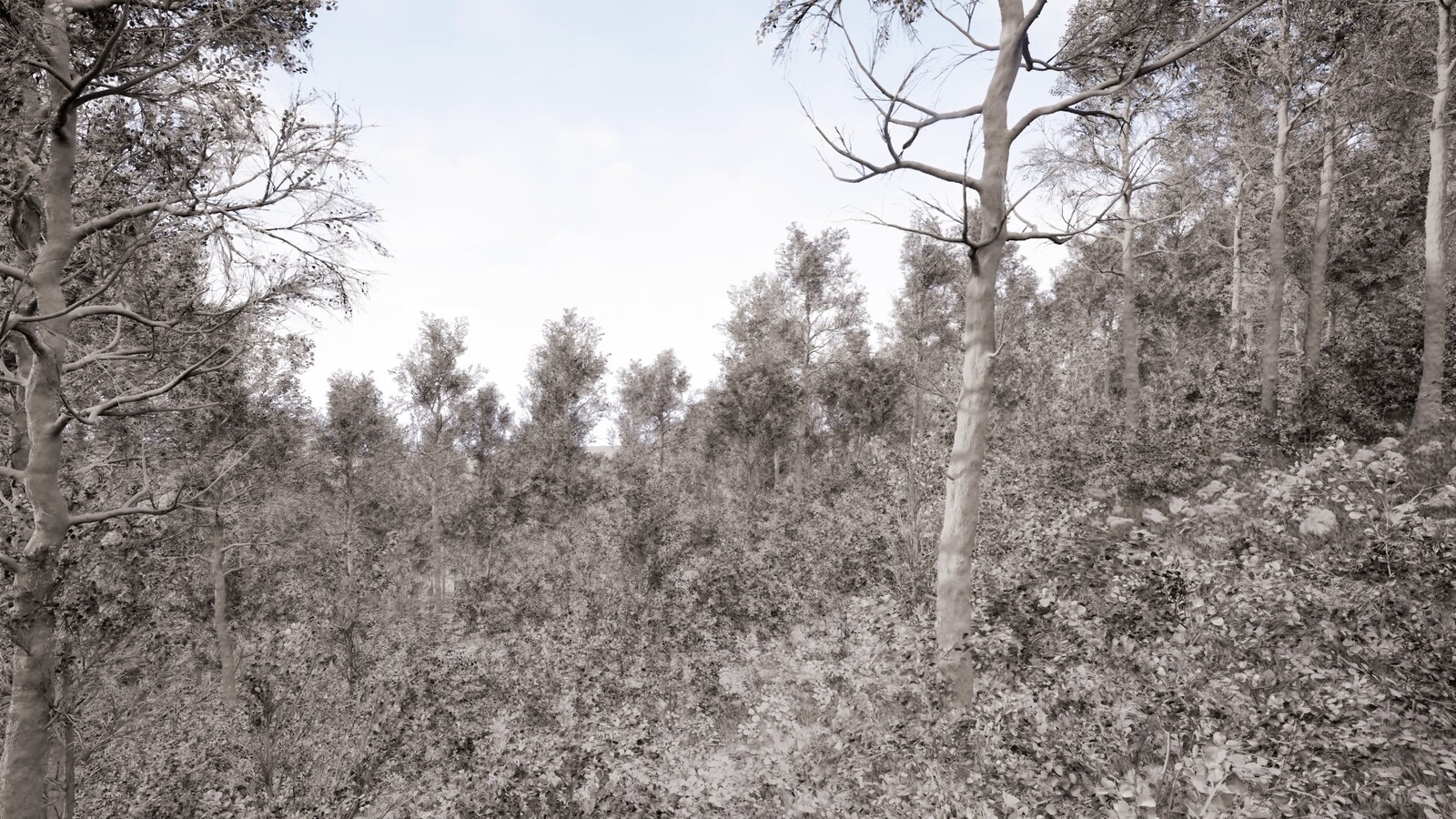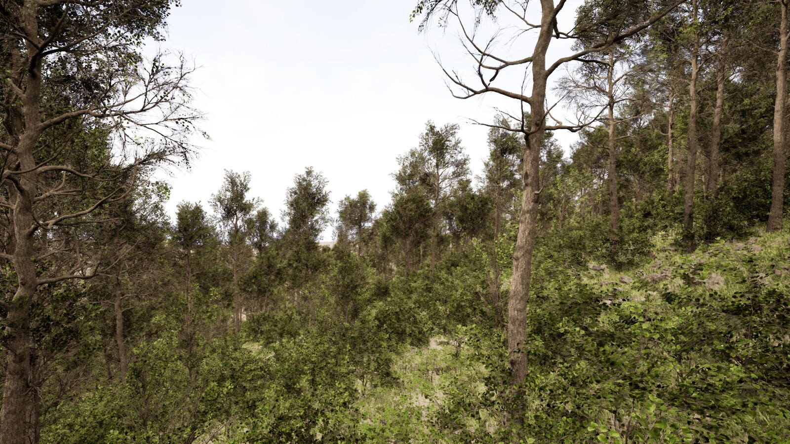 The dry forest on a sloped terrain has proven to be very challenging. This project was a great exercise that put my landscape design knowledge to test. Unreal Engine surely is a powerful tool, and I hope to come back to a similar project in the future.